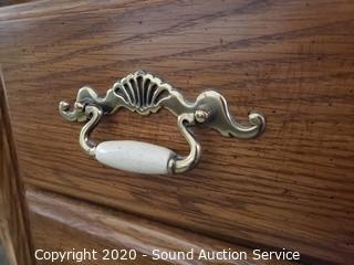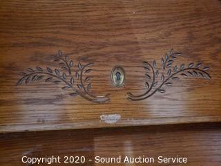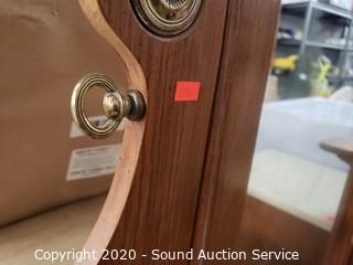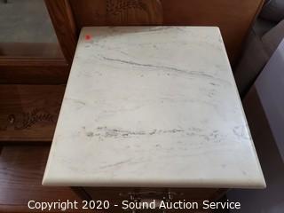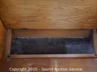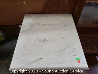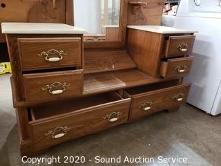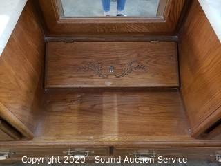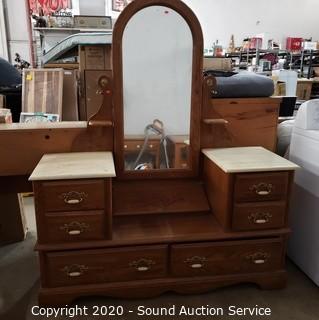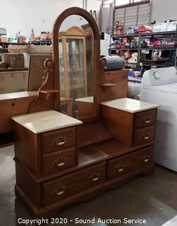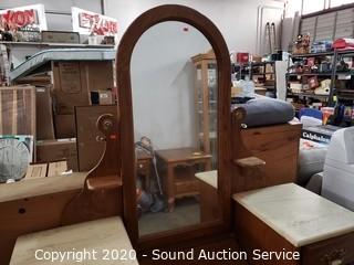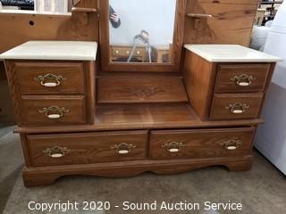 Lot #0020: Vtg. Vaughan Oak Travertine Top Makeup Vanity