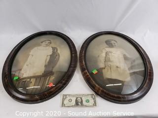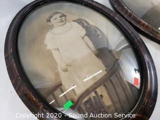Lot #0139: 2 Vtg. Bubble Glass Child Portrait Artwork