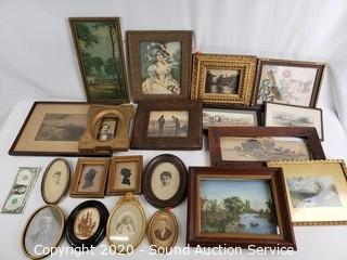 Lot #0128: 21 Vintage Framed Portraits & Artwork