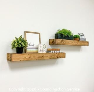 Lot #0333: 2pk Decorative Dark Walnut Pine Floating Shelves