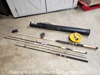Modular Grey Fabric Sofa, Nice Dark Grey Modern Tufted Easy Chair, Vtg. Mahogany Drop Leaf Dining Table w/6 Chairs, Beautiful Vtg. Mahogany Serpentine Front Hutch, Mongoose 29" 21-Speed Excursion Mountain Bike, Shop Smith Home Workshop Machine, Antique Oak Mirrored Secretary Curio Cabinet, Wrought Iron Patio Table w/4 Chairs & Umbrella, Antique 1890s Warnicke Mahogany Lawyers Bookcase, Vintage Fishing Rods, Heavy Duty Shop Power Tools, Handcrafted Rinconada Clay Animal Sculptures, Coleman & Other Oil Lanterns, Vtg. Fishing Creels, Fine China Sets, New Household Home Improvement & Much More!!!
