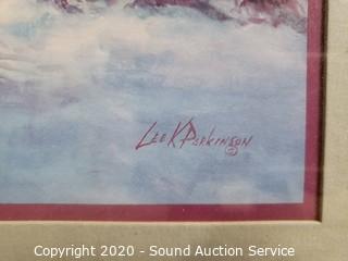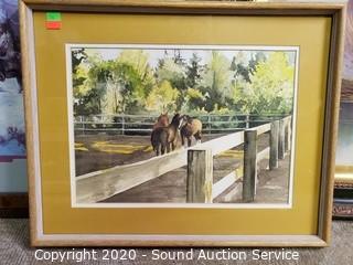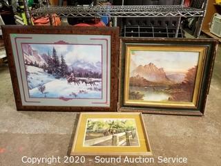 Lot Details: Lee K. Parkinson snowy mountain scene, original horse watercolor (do not see a signature) and McGregor print (some warping and damage to the frame). Smallest is 19" x 15", largest is 32" x 26".