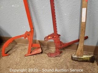 Lot Details: Includes telescopic tree limber, log clamp, splitting maul, log roller and 28" cross cut bow saw.