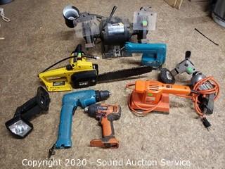 Modular Grey Fabric Sofa, Nice Dark Grey Modern Tufted Easy Chair, Vtg. Mahogany Drop Leaf Dining Table w/6 Chairs, Beautiful Vtg. Mahogany Serpentine Front Hutch, Mongoose 29" 21-Speed Excursion Mountain Bike, Shop Smith Home Workshop Machine, Antique Oak Mirrored Secretary Curio Cabinet, Wrought Iron Patio Table w/4 Chairs & Umbrella, Antique 1890s Warnicke Mahogany Lawyers Bookcase, Vintage Fishing Rods, Heavy Duty Shop Power Tools, Handcrafted Rinconada Clay Animal Sculptures, Coleman & Other Oil Lanterns, Vtg. Fishing Creels, Fine China Sets, New Household Home Improvement & Much More!!!