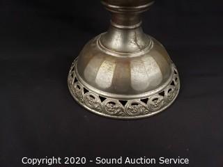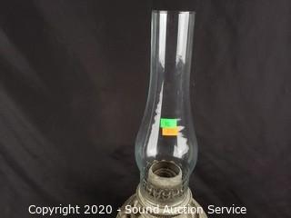 Lot Details: Comes with chimney, do not believe it is the original. 12" x 6.5" diameter base with 10" chimney. Patent date 1888.