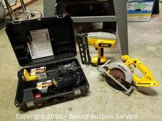 Lot #0121:     DeWalt XRP 18V Cordless Nail Gun & Circular Saw
