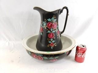 Lot #0142: Vtg. Hand Painted Cameo Ware Picher & Basin