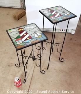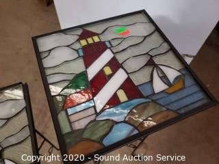 Lot #0243: 2 Leaded Stained Glass Lighthouse Tables