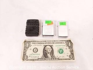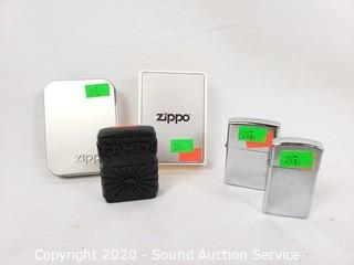 Lot Details: Includes 1998 Camel (sealed, with original tin), 1955-1979 slim Zippo and 2000 Zippo.