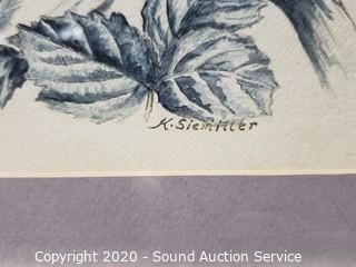 Lot Details: Watercolor signed K. Siemiller, 12" x 15", & 2 crafted from fibers 20" x 16".