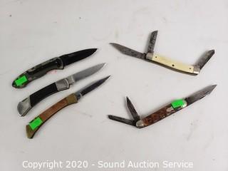 Lot Details: Sears Craftsman dual blade, Rostfrei, Ace, & Schrade Walden 3 blade.