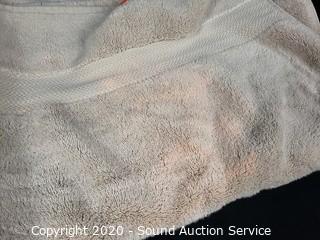 Lot Details: Bath towel, 2 hand towels and 2 wash cloths. A couple minor discolored spots on 1 hand towel, bath towel has some bleach spotting.