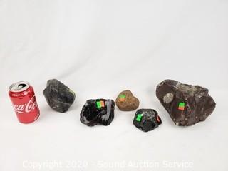 Lot #0065: 6pc Collectible Obsidian & Agate Stones