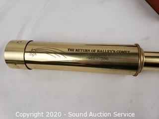 Lot Details: Comes with original wood box & plaque. Monogrammed "The Return of Hailey's Comet 1985-1986". Telescopic 8" to 17.5". Hinges on case are not attached.