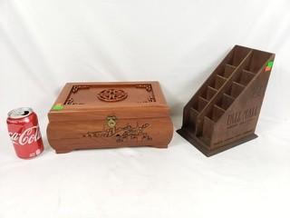 Lot #0238: Carved Jewelry Box & Pall Mall Cigarette Display
