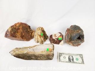 Lot Details: Obsidian, marble, agate. Smallest is 2" x 2", largest is 1/2" x 6" x 9". TW approx. 10lbs.