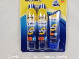 Lot #0278: New 3pk Coppertone Sport SPF50 Sun Screen