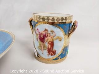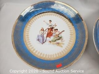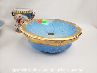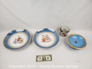 Lot #0066: 4pc Vintage Blue & Gold Trim China