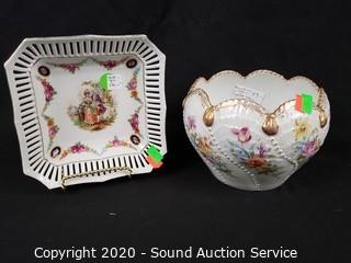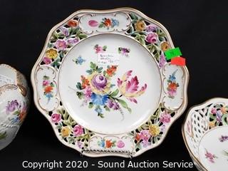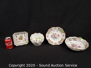 Lot #0079: 4pc Vtg. Dresden Pierced Fine China