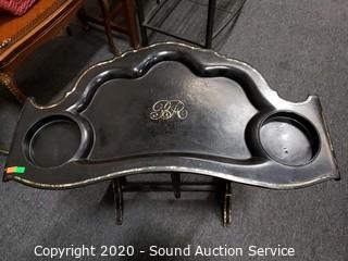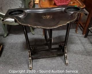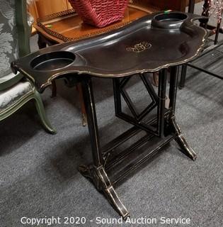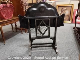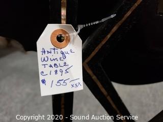Lot #0010: c.1895 Antique Black w/MOP Inlay Wine Table