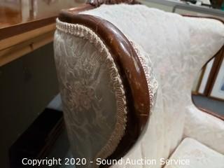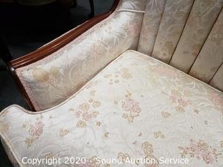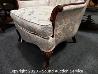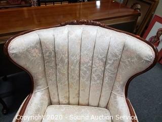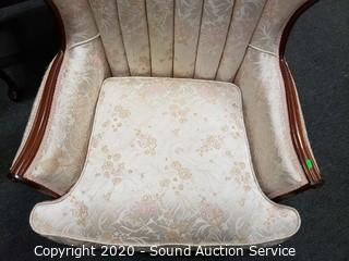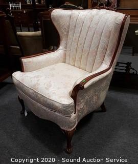 Lot #0019: Vtg. Scalloped Floral Upholstered Wing Back Chair