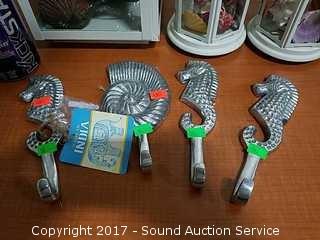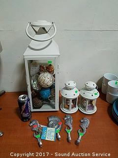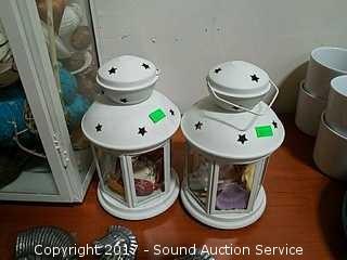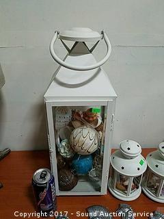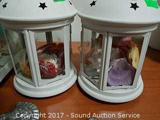 Lot #0050: 3 Ikea Metal Lantern Decor w/Seashells & 4 Hooks