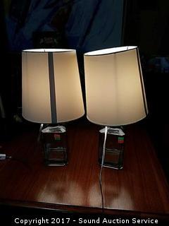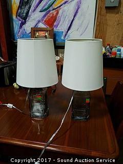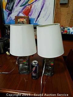 Lot #0068: Pair of Glass Liquor Decanter Table Lamps 18"