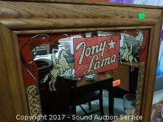 Lot #0020: Tony Lama Framed Mirrored Advertising Sign