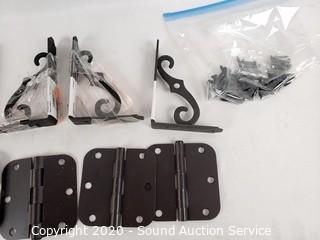 Lot #0128: (11) 3.5" Door Hinges & (5) 5x3" Shelf Brackets