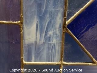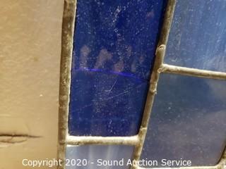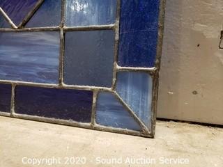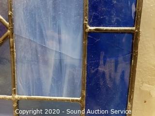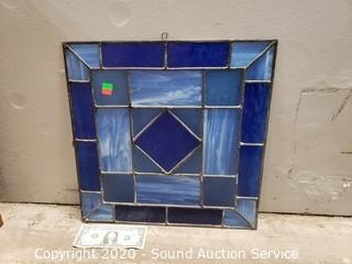 Lot #0052: 16" x 16" Blue Leaded Stained Glass Window Decor