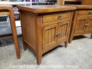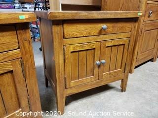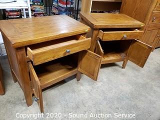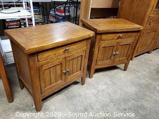 Lot #0003: 2 Solid Oak Single Drawer w/Cabinet Nightstands
