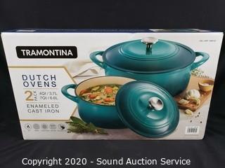 Lot #0233: 2pk Tramontina Green Cast Iron Enamel Dutch Ovens