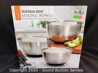 Lot #0194: 3 New Stainless Mixing Bowls w/Non-Slip Bottom
