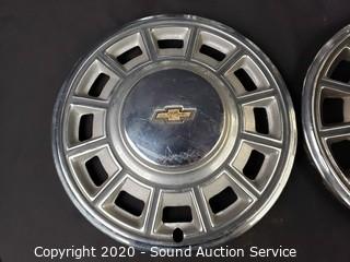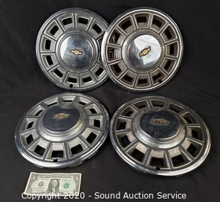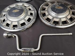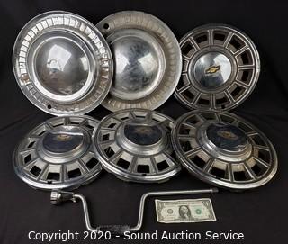 Lot #0144: 4 Chevy 13" & 2 Plymouth 1956 Mopar 15" Hub Covers