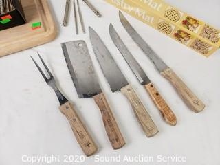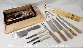 Lot #0137: Assortment of Cutlery, Cutting Board & Utensils