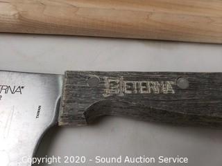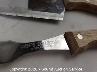 Lot Details: Mostly Chefs Collection wooden handles. 18" x 12" cutting board with drip edge.