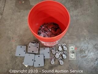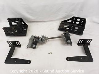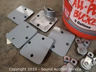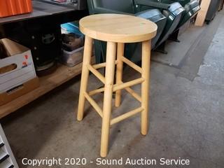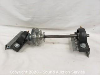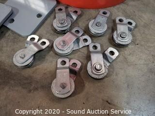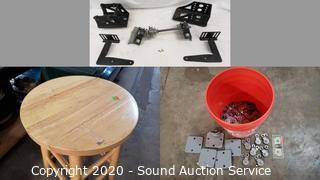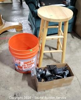 Lot Details: Oak 24" Stool, Elec. Motor Guide w/Brackets, Collection of Split Steel 1.5" Nylon Pullies.