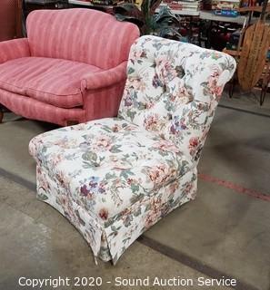 Lot #0082: Floral Upholstered Tufted Accent Chair