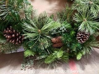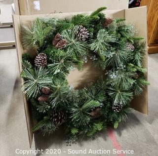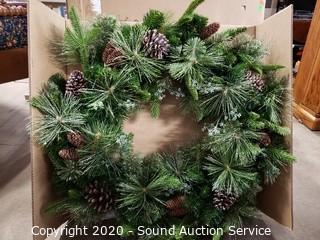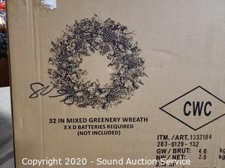 Lot #0078: Like New 32" Mixed Greenery LED Pre-Lit Wreath