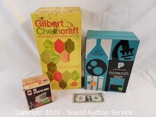 Lot Details: Unknown completeness. Microscope & Chemistry kit are in tin cases.