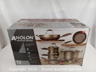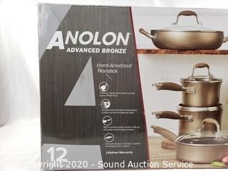 Lot #0315: New Anolon 12pc Hard Anodized Non-Stick Cookware