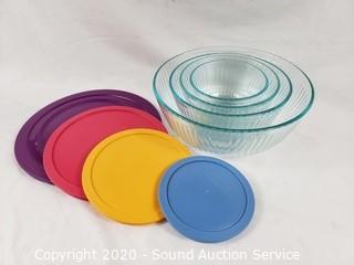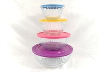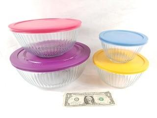 Lot #0211: New Set of 4 Pyrex Nesting Mixing Bowls w/Lids