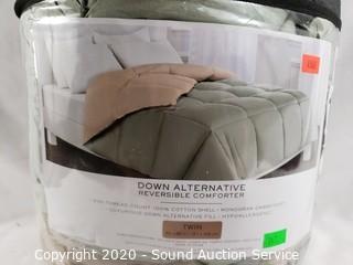 Lot Details: Like new condition. 66" x 90", reversible green & beige. 200 thread count, 100% cotton, Hypoallergenic.