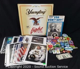 Lot #0236: Various Patches, Tin Beer Sign & Astronaut Photos