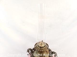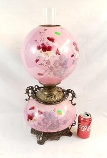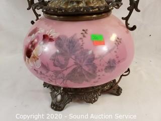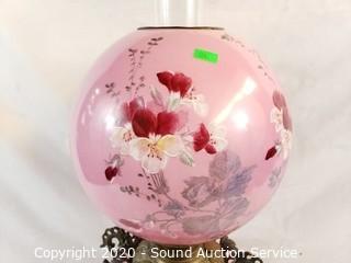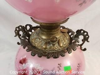 Lot #0206: Vtg. Hand Painted Floral Pink Glass Table Lamp