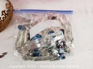 Lot Details: Comes with 1 chimney's. Not sure how you hang it, has a short wire. 11" x 14" frame. Works.