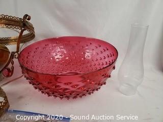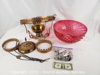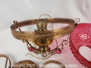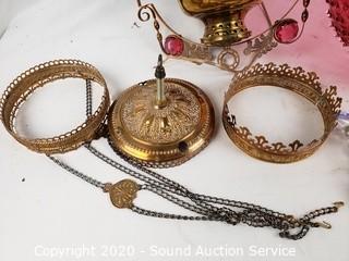 Lot #0120: Vtg. Juno Lamp Cranberry Glass Hanging Lamp