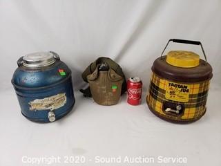 Lot #0141: Vtg. Military Canteen, Ceramic & Fiberglass Jugs