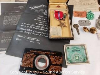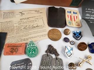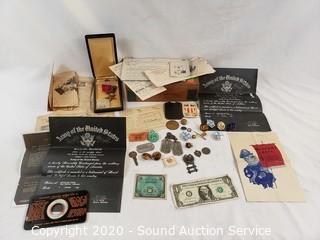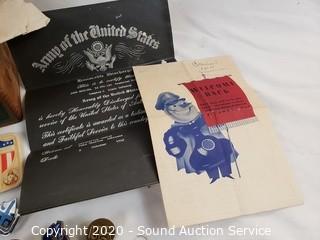 Lot #0182: WWII Service Medal, Pins, Ephemera & More