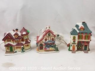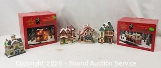Lot #0252: 6pc Lighted Ceramic Christmas Village Decor